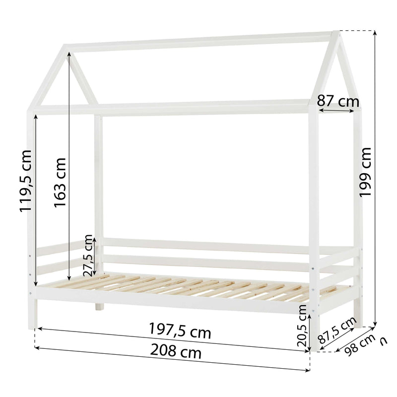 Die große Liegefläche von 90x200 cm bietet viel Platz zum Wachsen. Das Bett kann so platziert werden, dass es entweder in den Raum hineinragt oder an einer Wand steht. Wenn euer Kind dazu neigt, nächtliche Abenteuer zu erleben, könnt ihr einfach eine abnehmbare Rausfallschutz an der Vorderkante des Bettes anbringen.