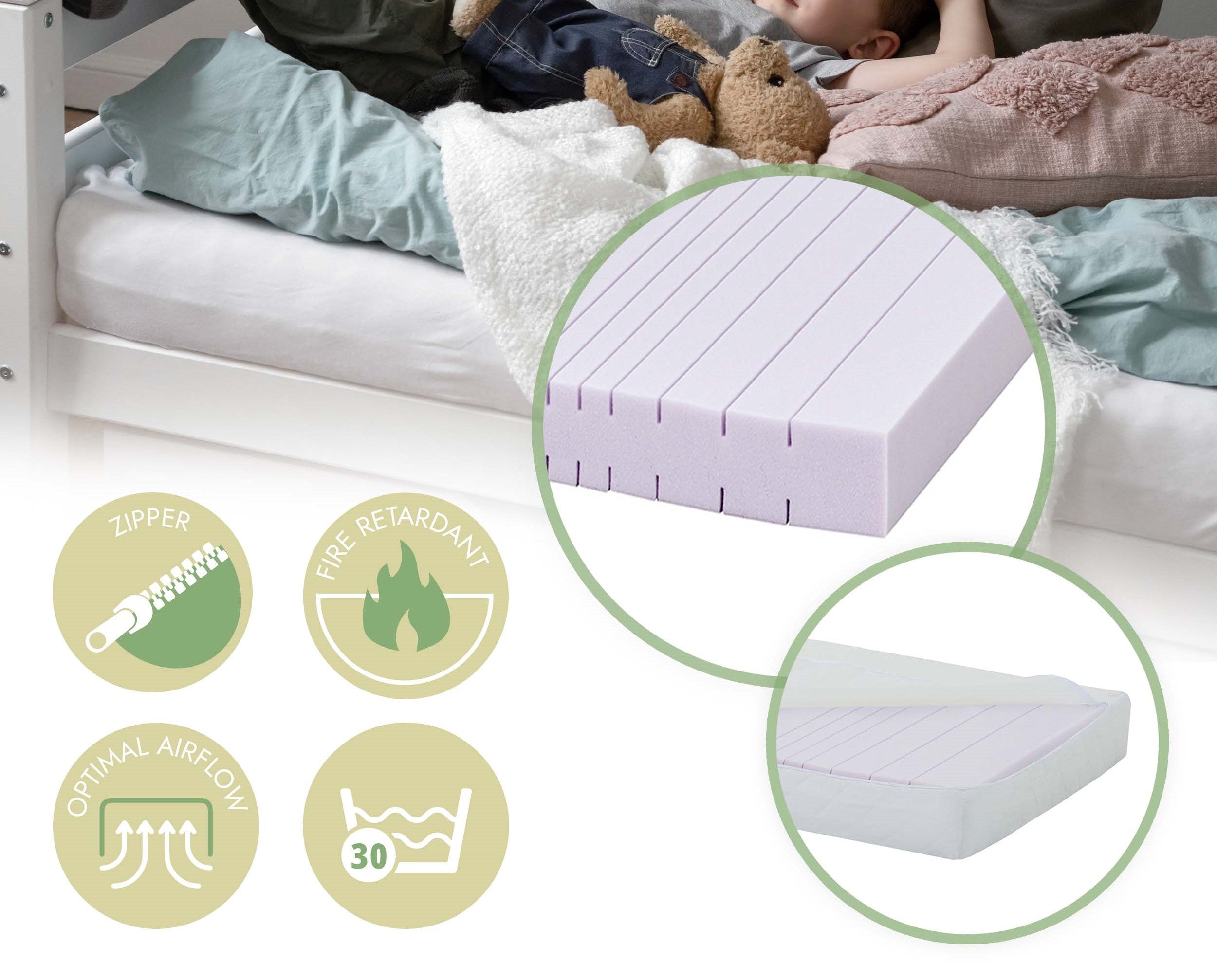 Las zonas de confort individuales en el colchón aseguran que su hijo reciba apoyo en todos los lugares correctos, independientemente de la posición para dormir.