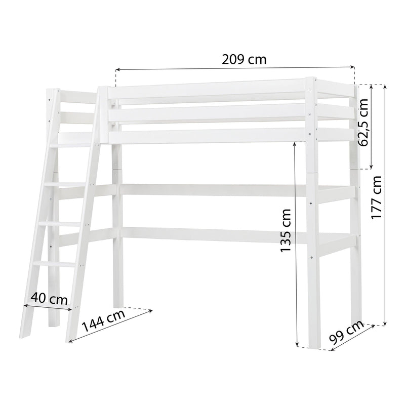 Højsengen er perfekt til det større barn, som ønsker mere gulvplads på værelset. Med højsengen udnytter du virkelig alle kvadratmeterne i værelset.
